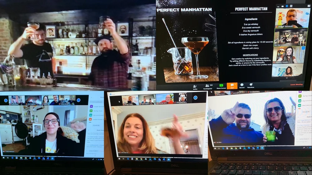 Looking to host an online corporate team building experience. Message us or call 800-385-0675. Virtual Cocktail Classes are the perfect team building event virtual birthday celebration or family and friends get-together.